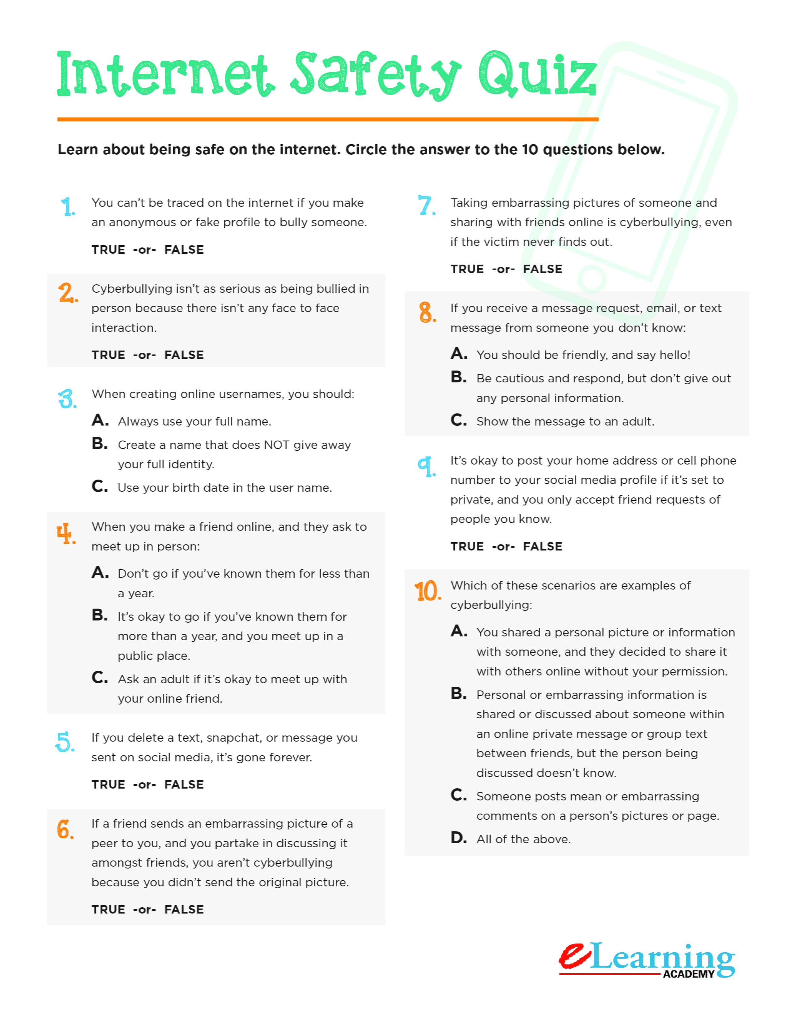Top suggestions for Internet Safety Quiz Printable